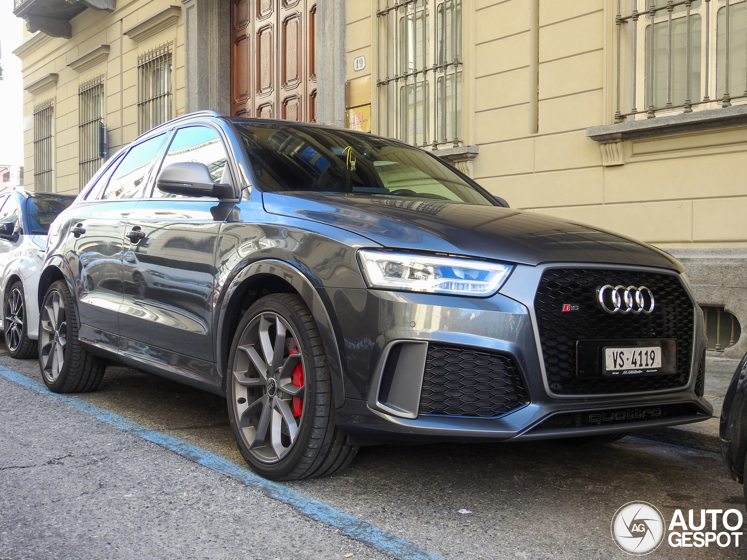 September 2025 At the end of September, after parking my car in Piazza Solferino, a square of the city centre, I've noticed this nice Swiss 2015 RS Q3 parked in a parallel road, so after paying for my parking I walked to it and took some pics. Those older RS Q3s are much rarer (and probably more interesting too) than 2020s, the single exhaust is always a fun detail to look at.
