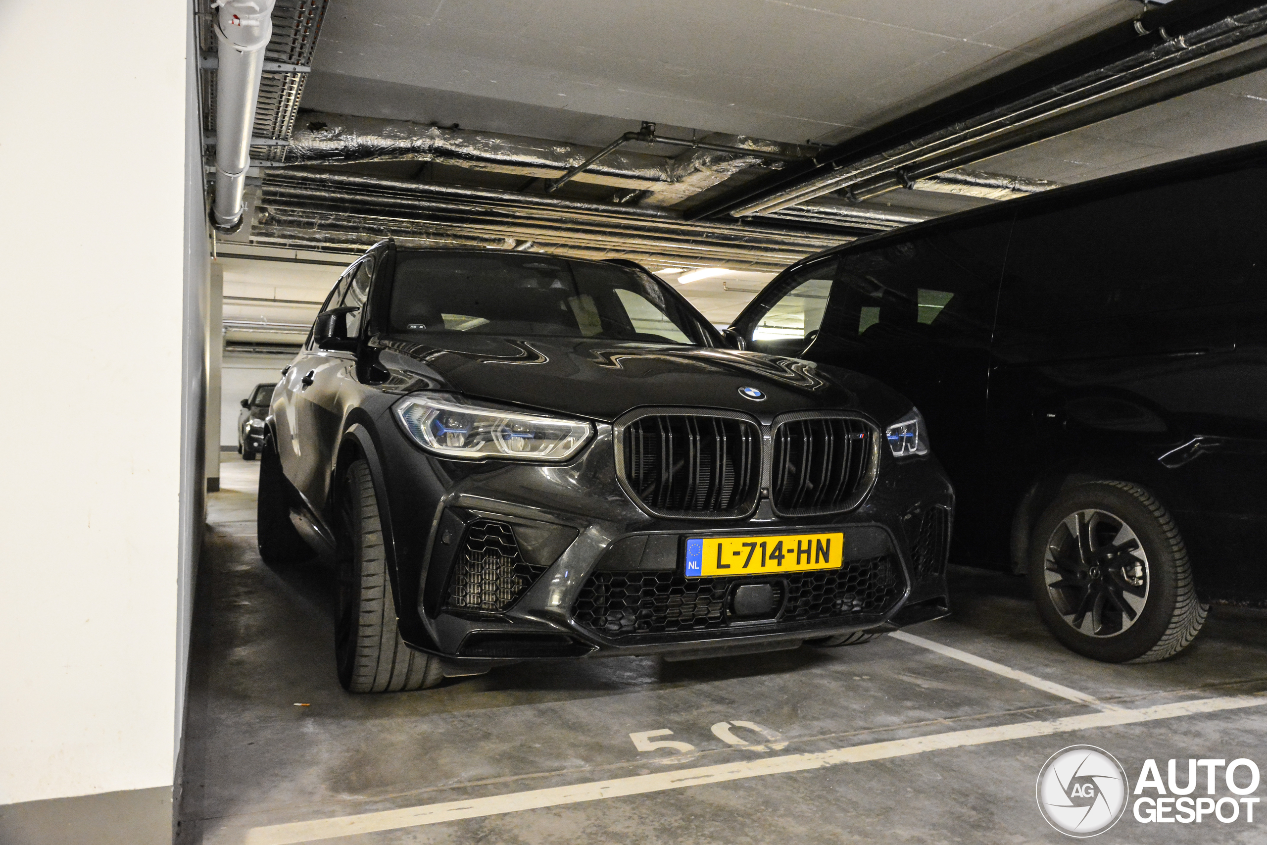 Een spotje vanuit de parking van het hotel. Deze X5 M is al enkele malen in NL gespot. Deze stond mooi weggestopt in het donker. Leuk om het carbon grilletje te zien! Wie ziet de combo? --- A spot from the hotel parking lot. This X5 M has been spotted several times in the Netherlands. This one was nicely tucked away in the dark. Nice to see the carbon grill! Who sees the combo?