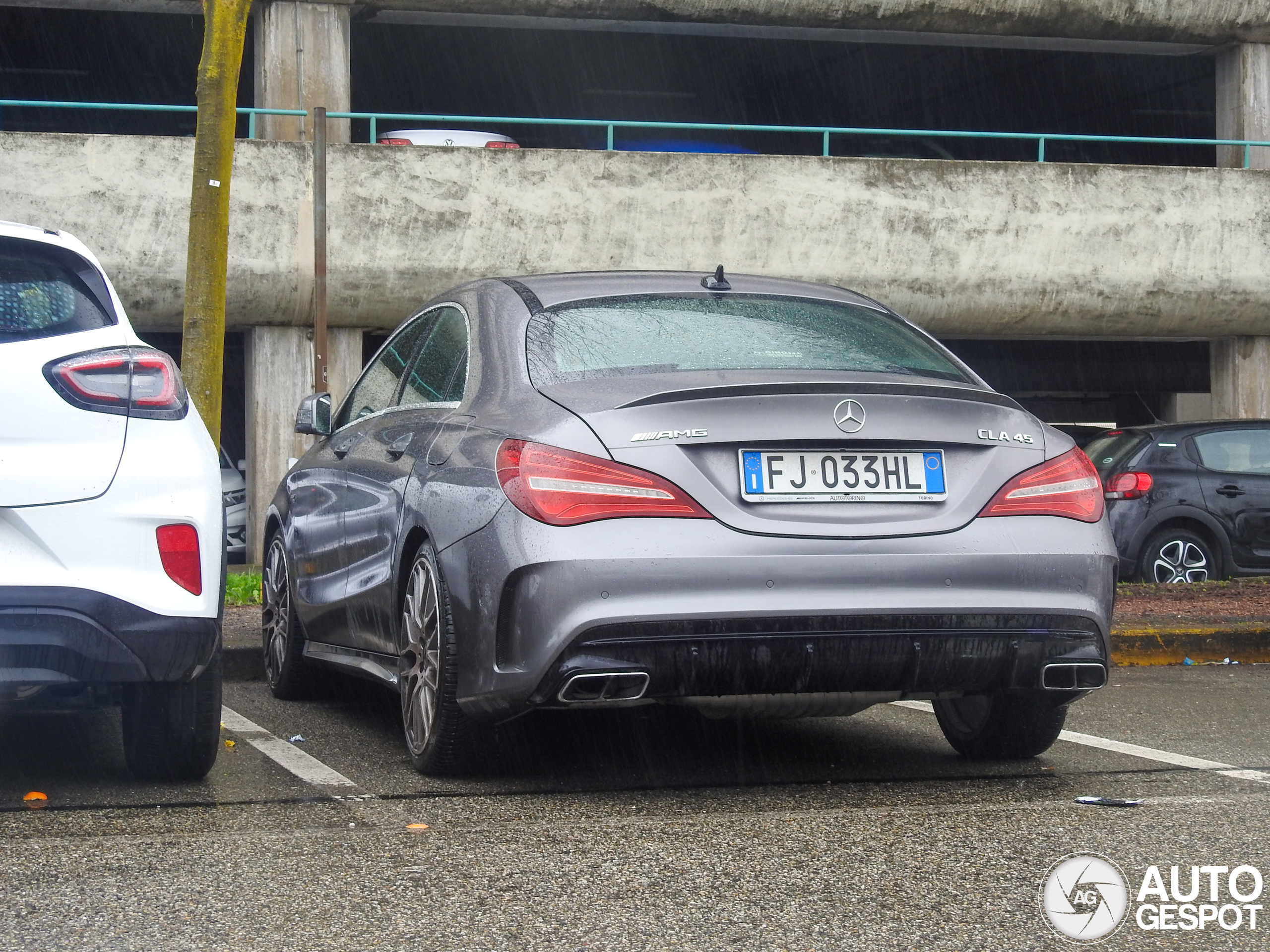 A couple weeks ago, just after parking my car at Le Gru mall of Grugliasco, I noticed a Mercedes CLA parked not far that looked like an AMG, despite the heavy rain I walked here to check and it was indeed a legit CLA 45, in the 2017 facelift, which is surprisingly the first one I spot!