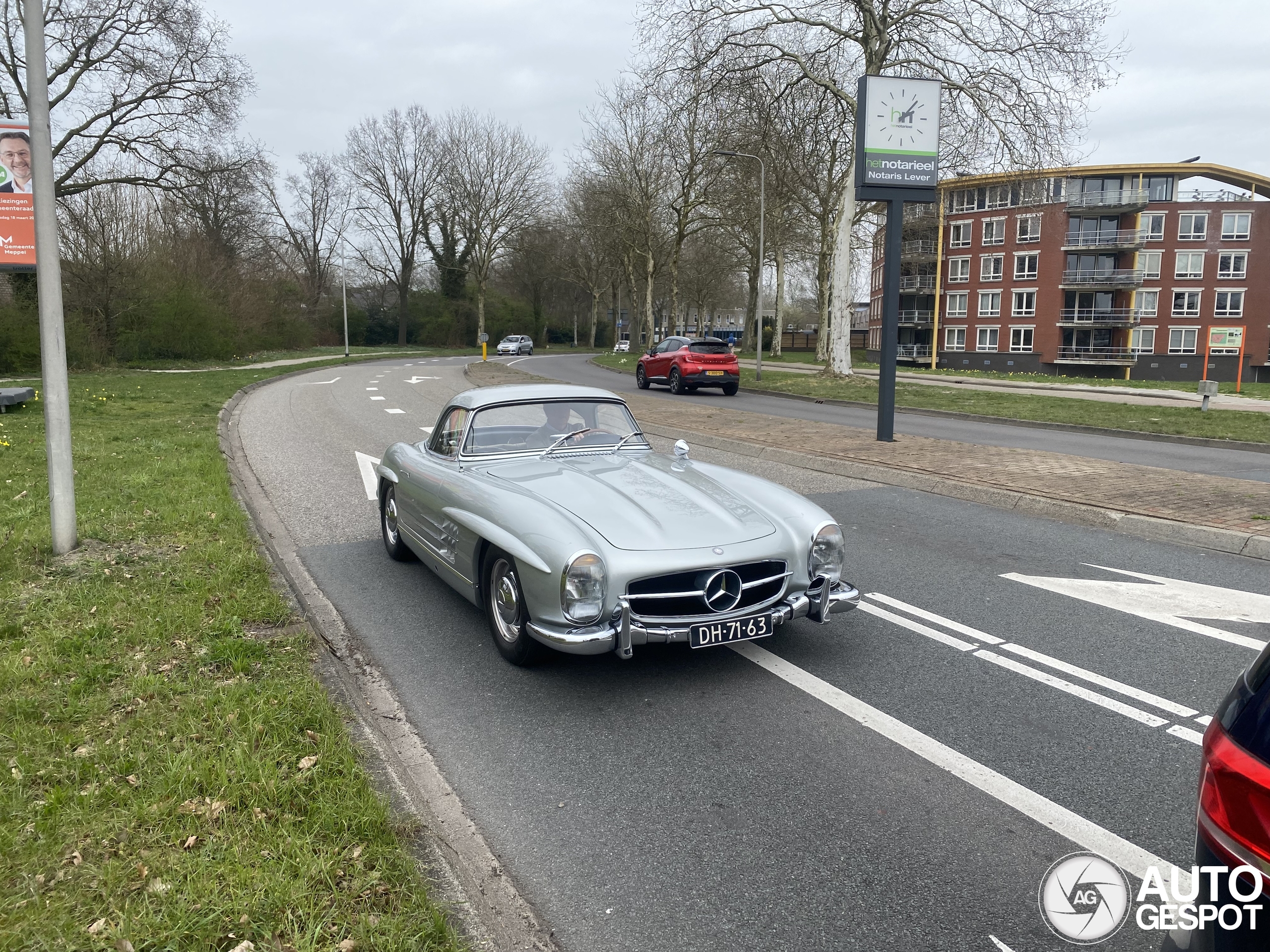 Ik had gisteren een gesprek in de oosterboer. Mijn moeder die moest nog even naar de wc, dus ik wachte in de auto. Toen we weg reden keek ik naar achteren, en ineens denkt mijn hoofd: “dit kan toch niet waar zijn! Maar ja hoor, het is een 300SL! Wat een prachtige auto om te zien. Hii klonk ook fantastisch toen die langsreed. Helaas zijn het niet de beste foto’s, ookal ben ik wel blij dat ik nog ben uitgestapt bij het stoplicht om snel een foto te maken. Ook hadden we hem nog kunnen achtervolgen op de snelweg, maar ik moest ook weer terug naar school dus helaas niet gedaan. Wel heb ik eindelijk een 300SL, random gespot. Toen ik een paar jaar geleden tussen de spots van meppel aan het kijken was zag ik dat deze ookal in Meppel is gespot. Toen hoopte ik hem nog is te spotten..